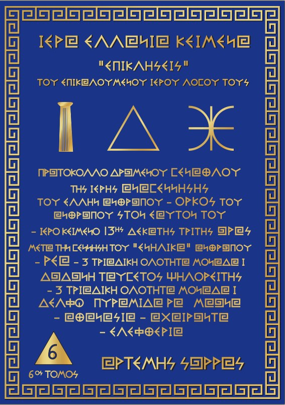 6ΟΣ ΤΟΜΟΣ : ΠΡΩΤΟΚΟΛΛΟ ΔΡΩΜΕΝΟΥ ΓΕΝΑΘΛΟΥ ΤΗΣ ΙΕΡΗΣ ΑΝΑΓΕΝΝΗΣΗΣ ΤΟΥ ΕΛΛΗΝ ΑΝΘΡΩΠΟΥ - ΟΡΚΟΣ ΤΟΥ ΑΝΘΡΩΠΟΥ ΣΤΟΝ ΕΑΥΤΟΝ ΤΟΥ